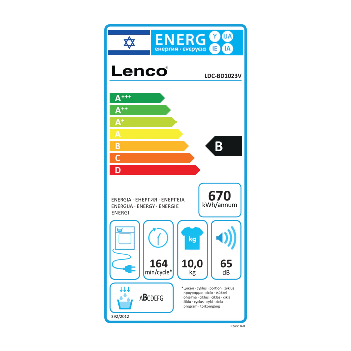 מייבש כביסה LENCO LDC-BD1023V בנפח 10 ק״ג עם מערכת מעבה (קונדנסור) איכותית – פתרון אידאלי למשפחות ובעלי צרכי ייבוש כביסה תכופים. המייבש מציע 15 תוכניות ייבוש כולל תכנית מהירה של 12 דקות, חיישני לחות חכמים להתאמת משך הייבוש לפי רמת הלחות בבגדים, ותוף נירוסטה בטכנולוגיית קריס-קרוס להבטחת ייבוש אחיד. לוח הבקרה הדיגיטלי בעברית כולל תצוגת LED לניטור זמן הייבוש והגדרות, יחד עם חיווי קולי בסיום הפעולה להפעלה נוחה וברורה.